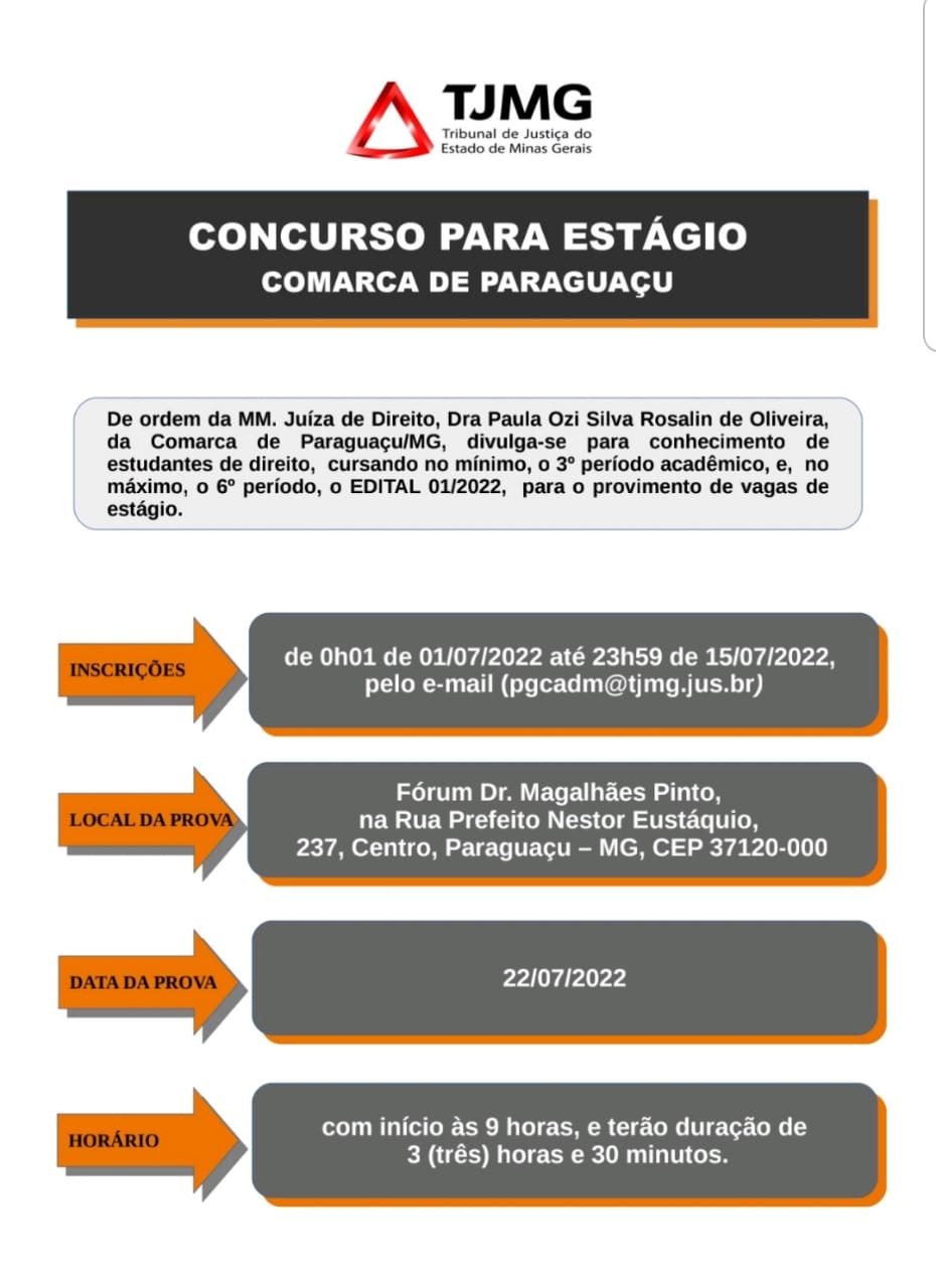 ESTÁGIO – DIREITO – TJMG – COMARCA DE PARAGUAÇU