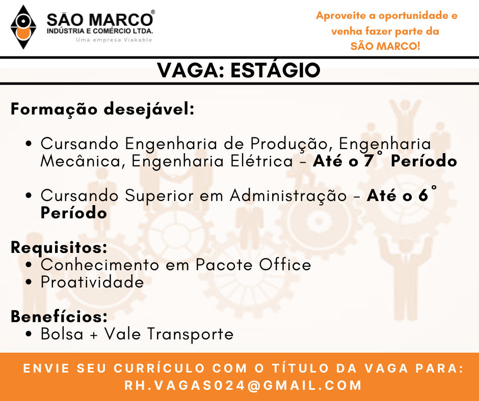 ESTÁGIO – ENG. PRODUÇÃO / MECÂNICA E ELÉTRICA – SÃO MARCO
