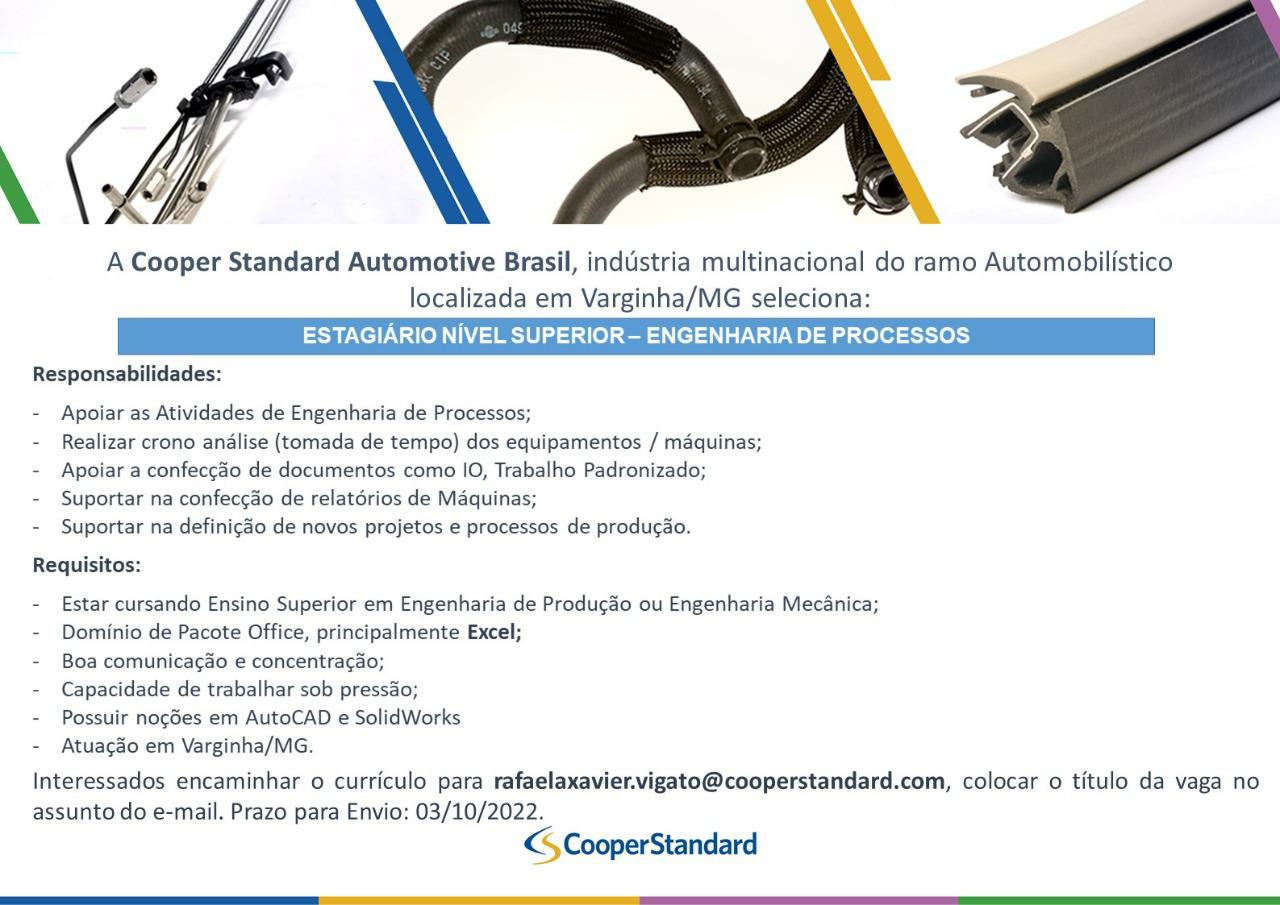ESTÁGIO – ENGENHARIA DE PROCESSOS – COOPER STANDARD AUTOMOTIVE BRASIL