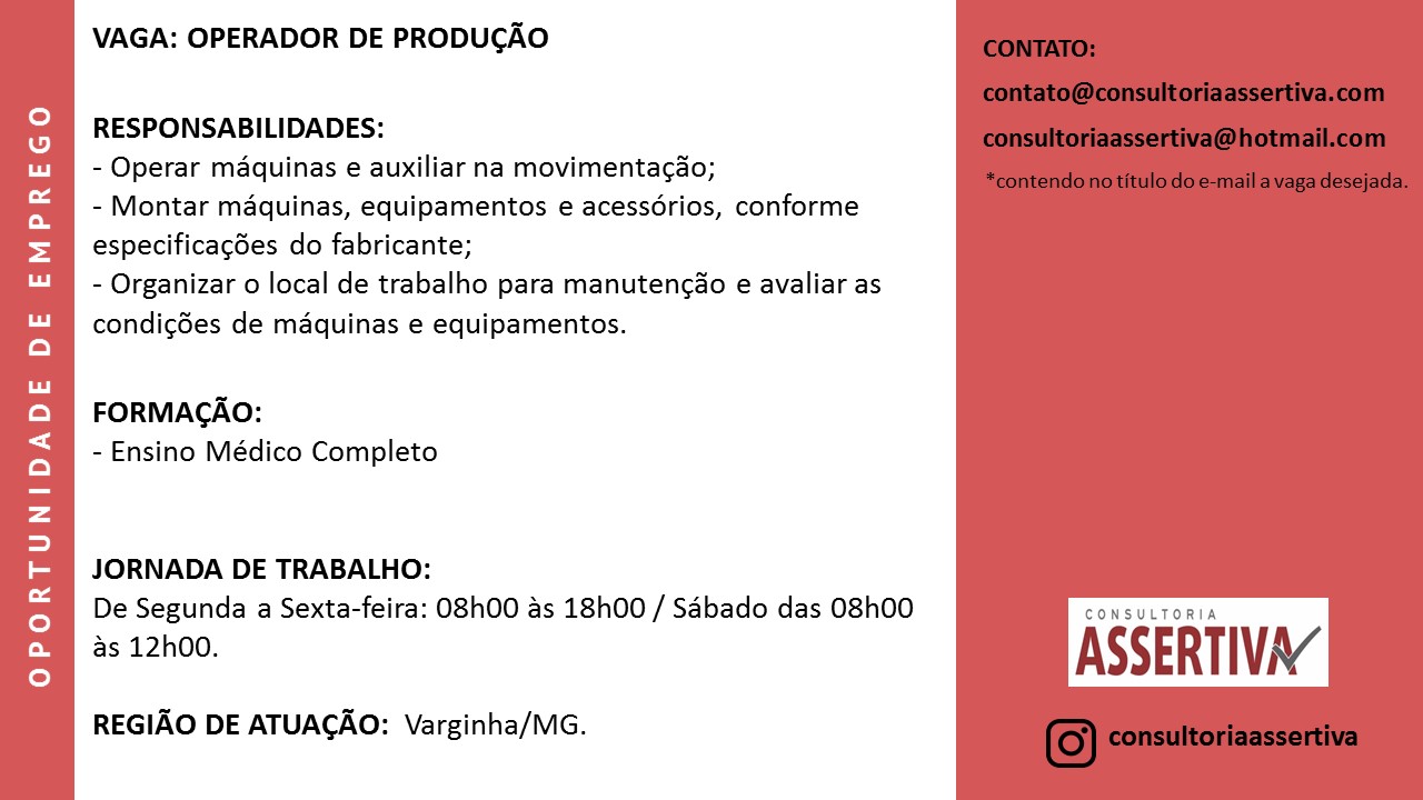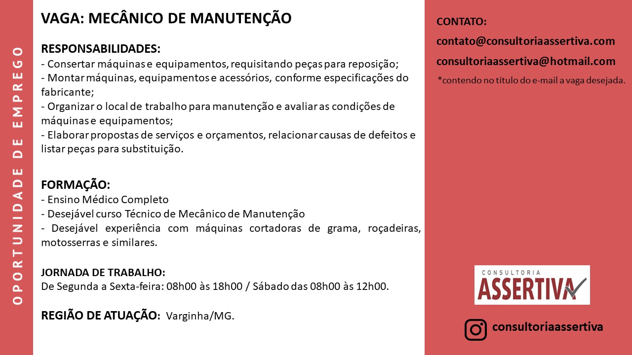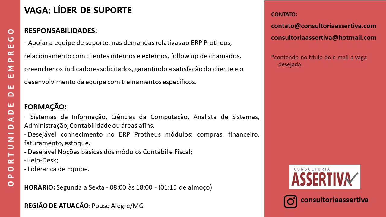 OPORTUNIDADE DE EMPREGO – CONSULTORIA ASSERTIVA
