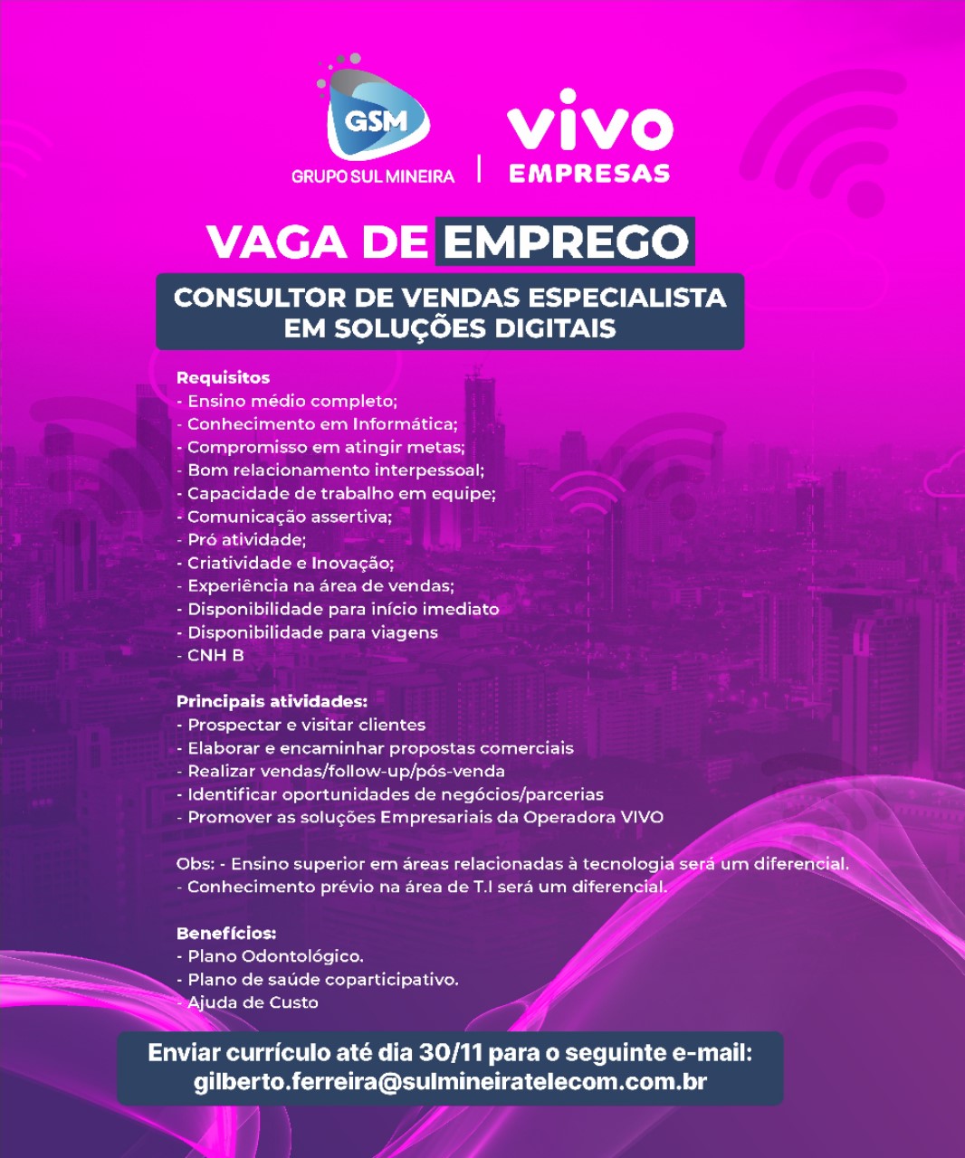 OPORTUNIDADE DE EMPREGO – VIVO EMPRESAS