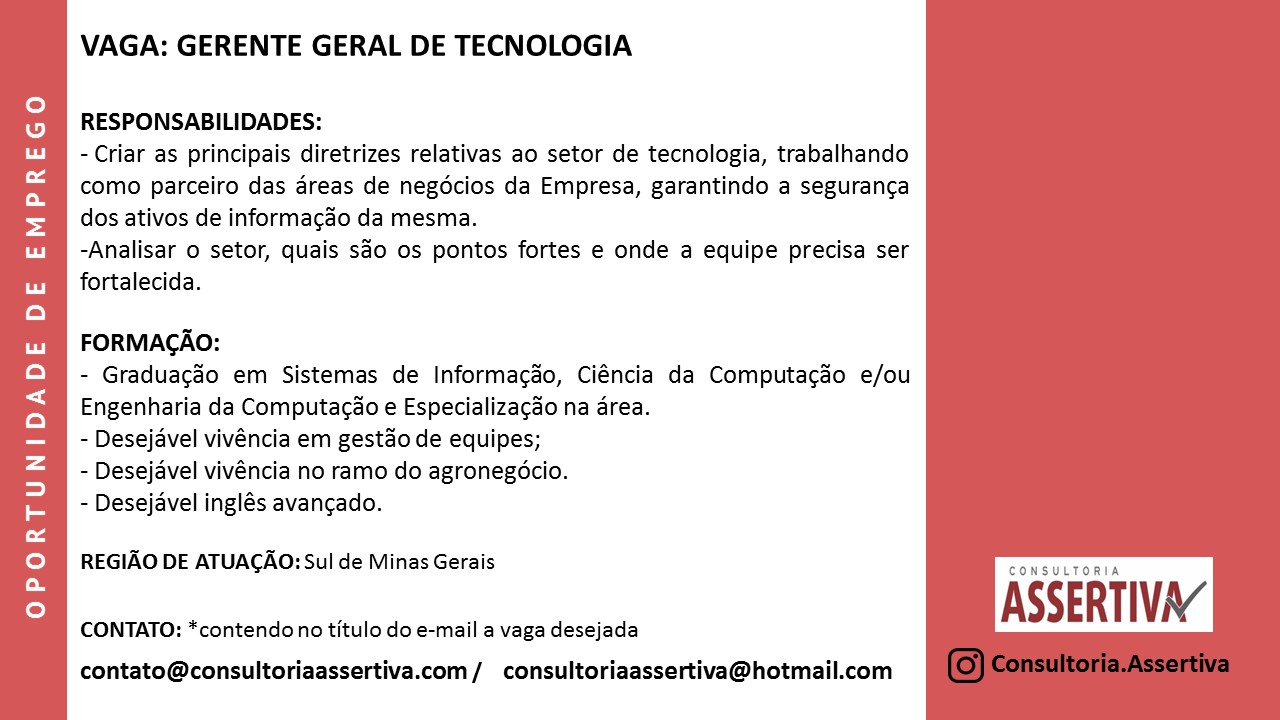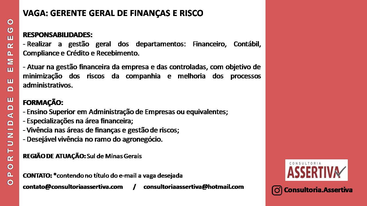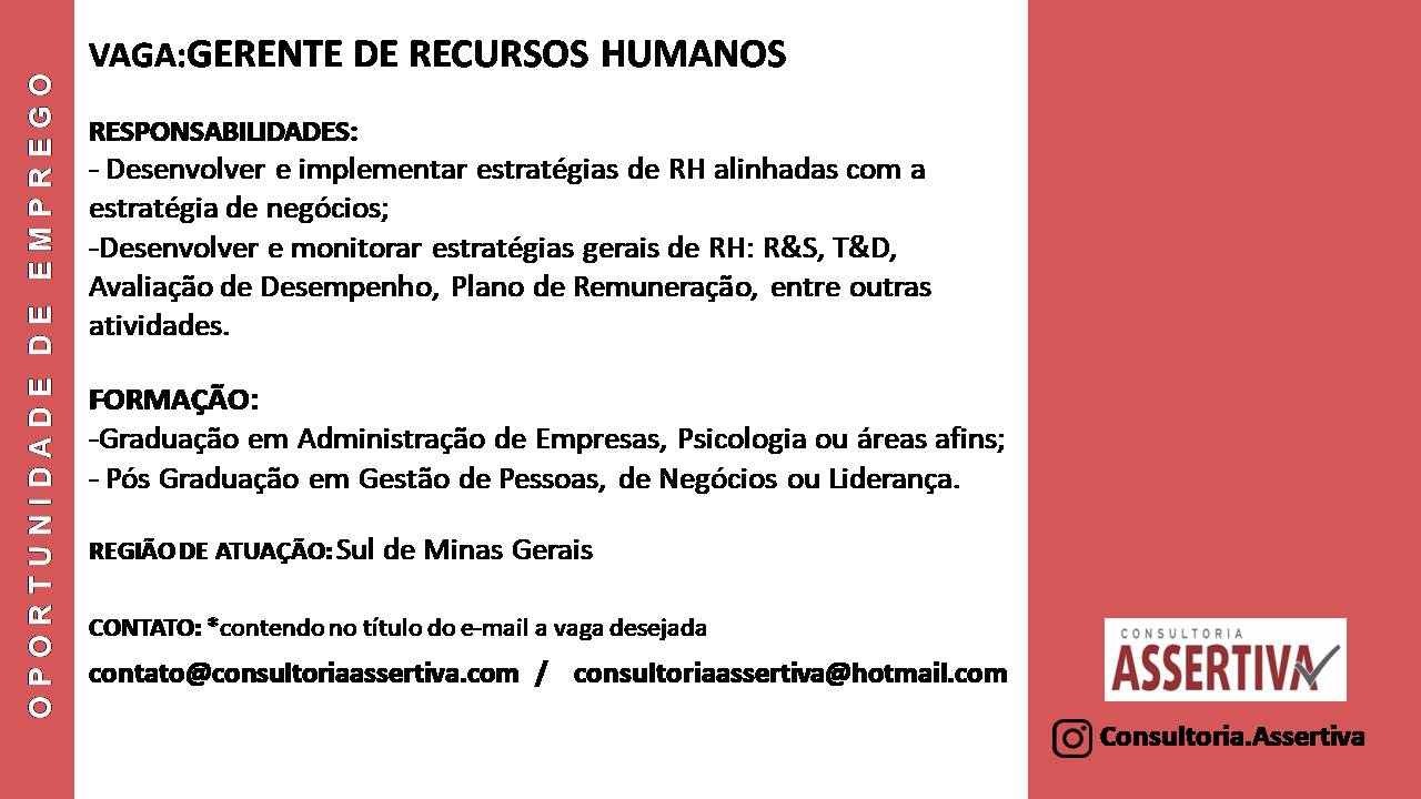 OPORTUNIDADES DE EMPREGO – CONSULTORIA ASSERTIVA